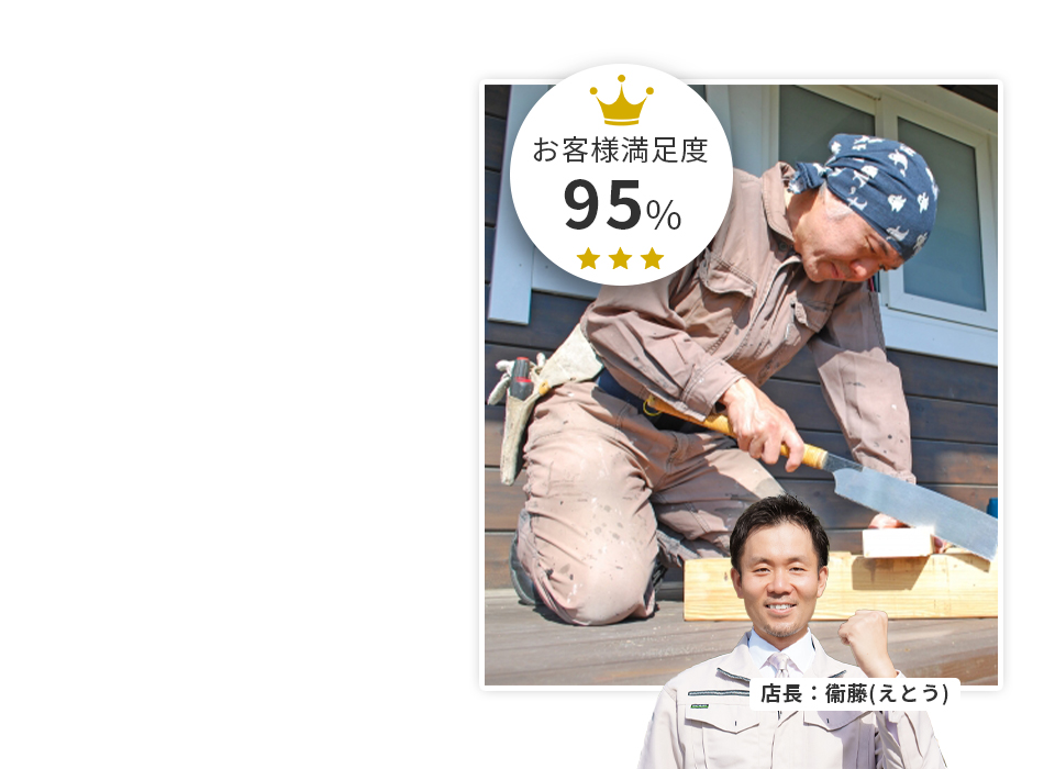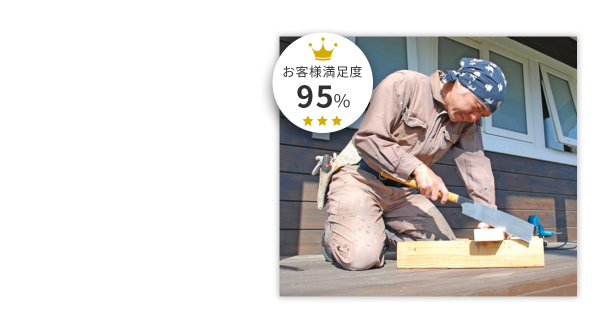 家の修理やリフォームを行う会社はたくさんありますが、「思ったよりも高い金額だった」「提示されたスケジュールがかなり先だった」など想定外のことも起こります。当社では腕の良い大工さんを派遣しコスパとスケジュール対応の両方を満たした丁寧な作業をお約束いたします。