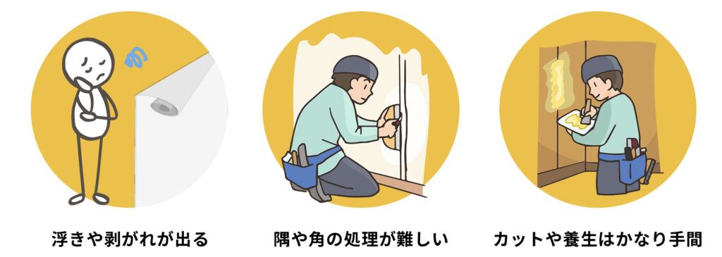 また、部屋の広さに合わせて材料をカットする手間や、専用の道具を揃える負担もあり、「結局そのまま放置してしまった」という声もよく聞かれます。