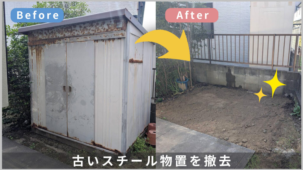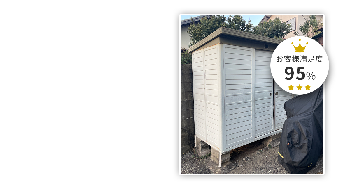 物置が無くなった後を見て皆様「こんなに広かったんだ!」と感動頂いてます。ぜひこのスッキリ感のお手伝いをさせてください。