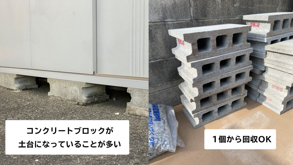 また、ご自身では触りたくないという物置の中身も当店で喜んで回収致します。他にも物置の基礎コンクリートブロックや、外に放置していた不用品などもまとめて回収できますのでぜひご相談ください!