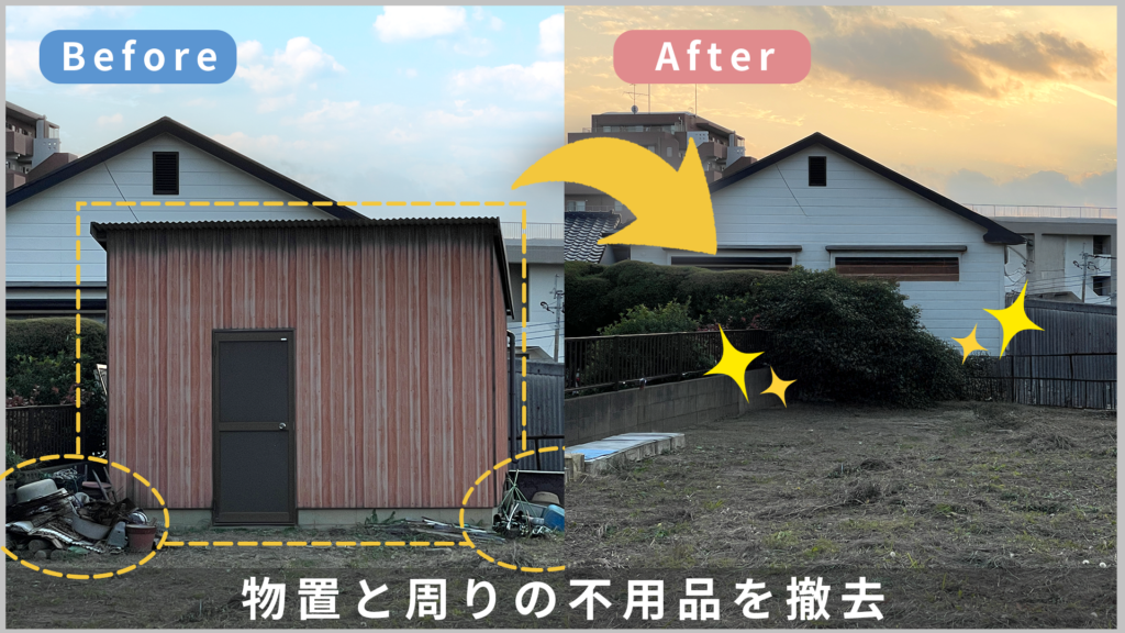 ▼事例 物置と周りの不要品を撤去