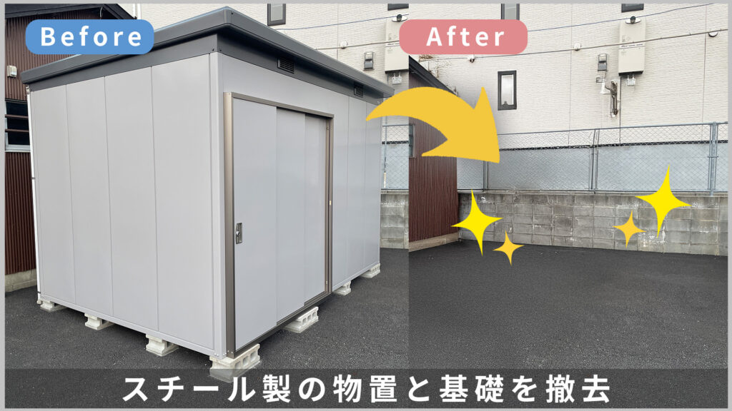 ・土台やコンクリートで基礎を作成している場合の撤去は別途費用がかかります。