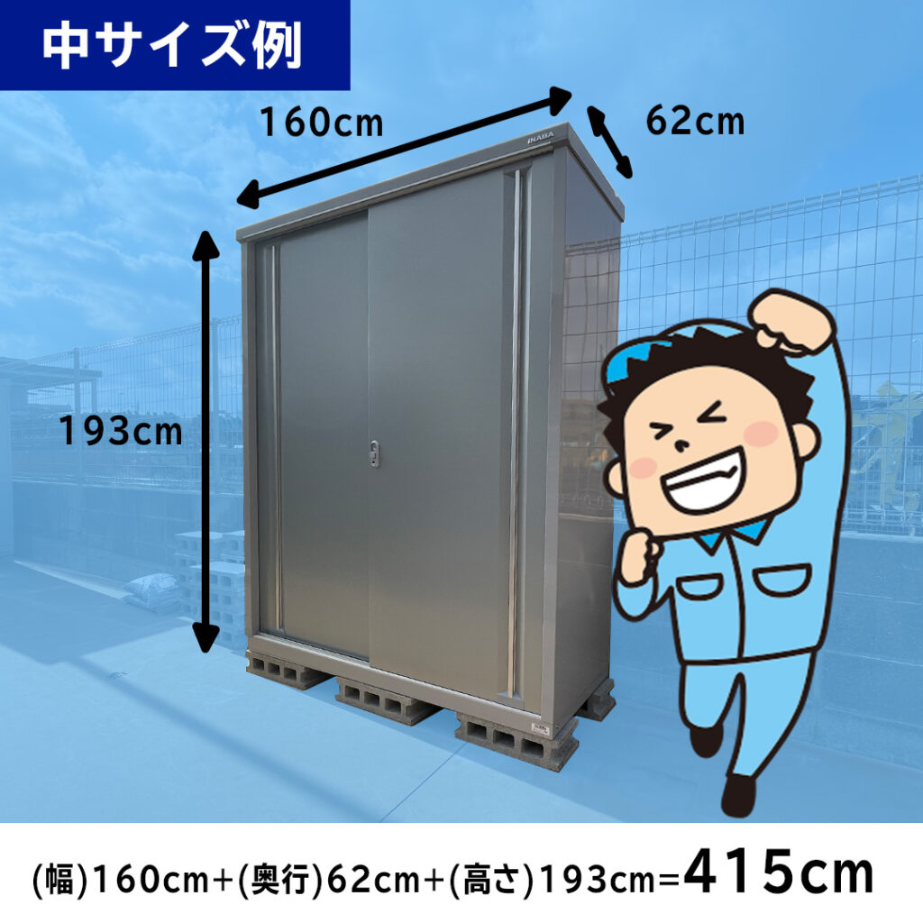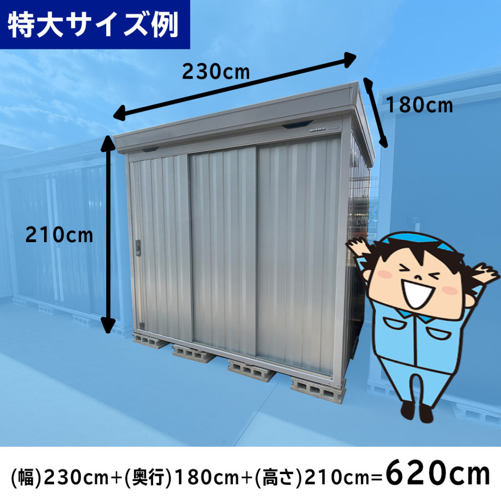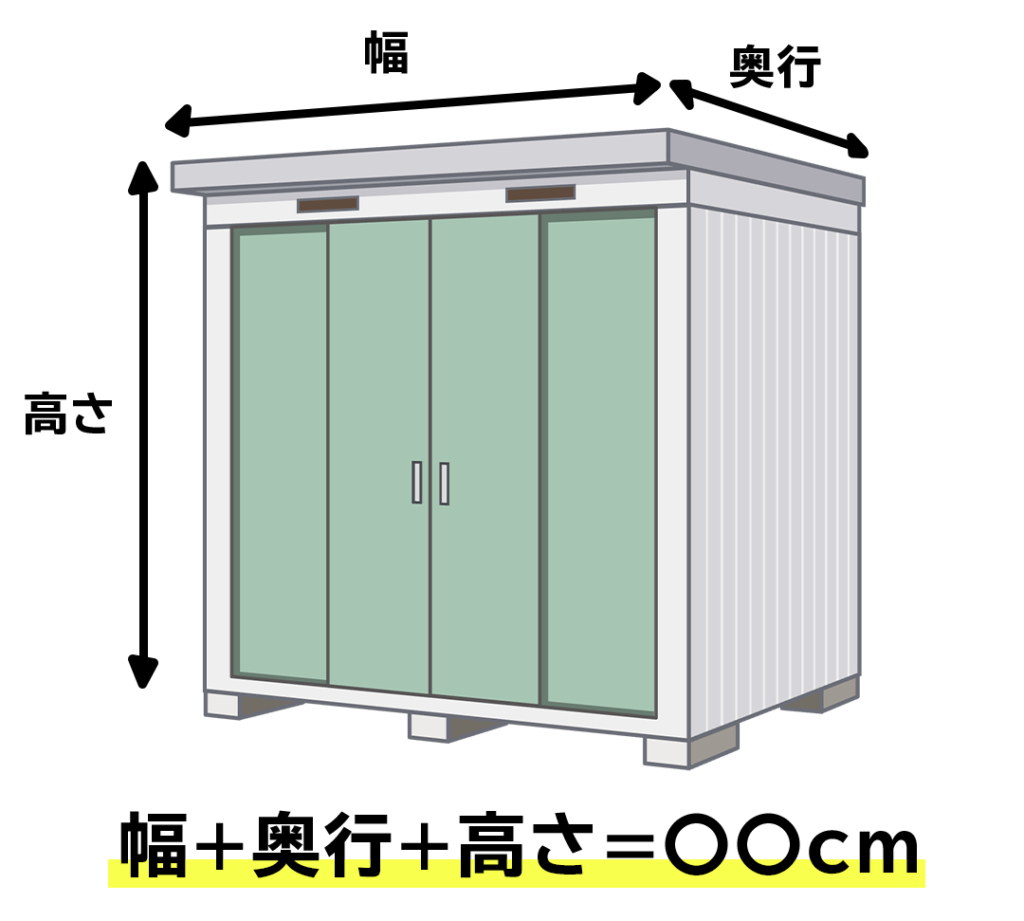 料金は物置の横幅、高さ、奥行きを足した合計のcmで決まります。
