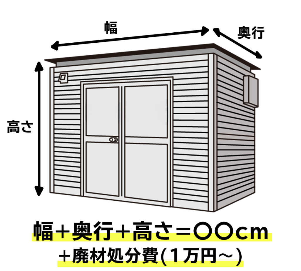 物置の横幅、高さ、奥行きを足した合計のcm+廃材処分費がかかってきます